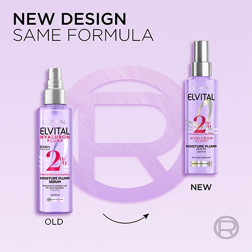 L'Oréal Paris Elvital Hyaluron Plump Moisture Plump hårserum er et fugtgivende leave-in serum til daglig anvendelse til dehydreret hår. Formlen drives med kraften fra et 2 % Hyaluronic Care System og fylder øjeblikkeligt håret med fugt samt øger fiberdiameteren med 9 %*. L'Oréal Paris Elvital Hyaluron Plump Moisture Plump hårserum styler dine længder og giver øjeblikkeligt fyldigt hår hele dagen. Brug den dagligt som en fugtgivende spray for 10x mere fugtet hår* og for at style dine længder. Tynger ikke ned.